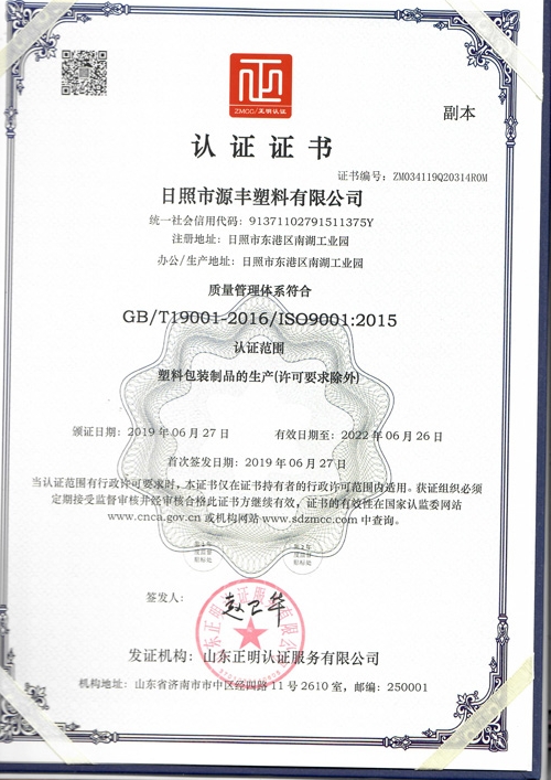 山東源豐塑料股份有限公司成立于2005年,占地幾十余畝,建筑面積1.5萬(wàn)平方,總投資1億,普通車(chē)間工人100名,高級(jí)5名,紙塑袋生產(chǎn)能力5000萬(wàn)條,日均15萬(wàn)條,主要生產(chǎn)紙塑復(fù)合袋,閥口袋,彩印袋,方底三層紙袋,吹膜袋,多層紙袋,紙塑邊縫袋等系列。